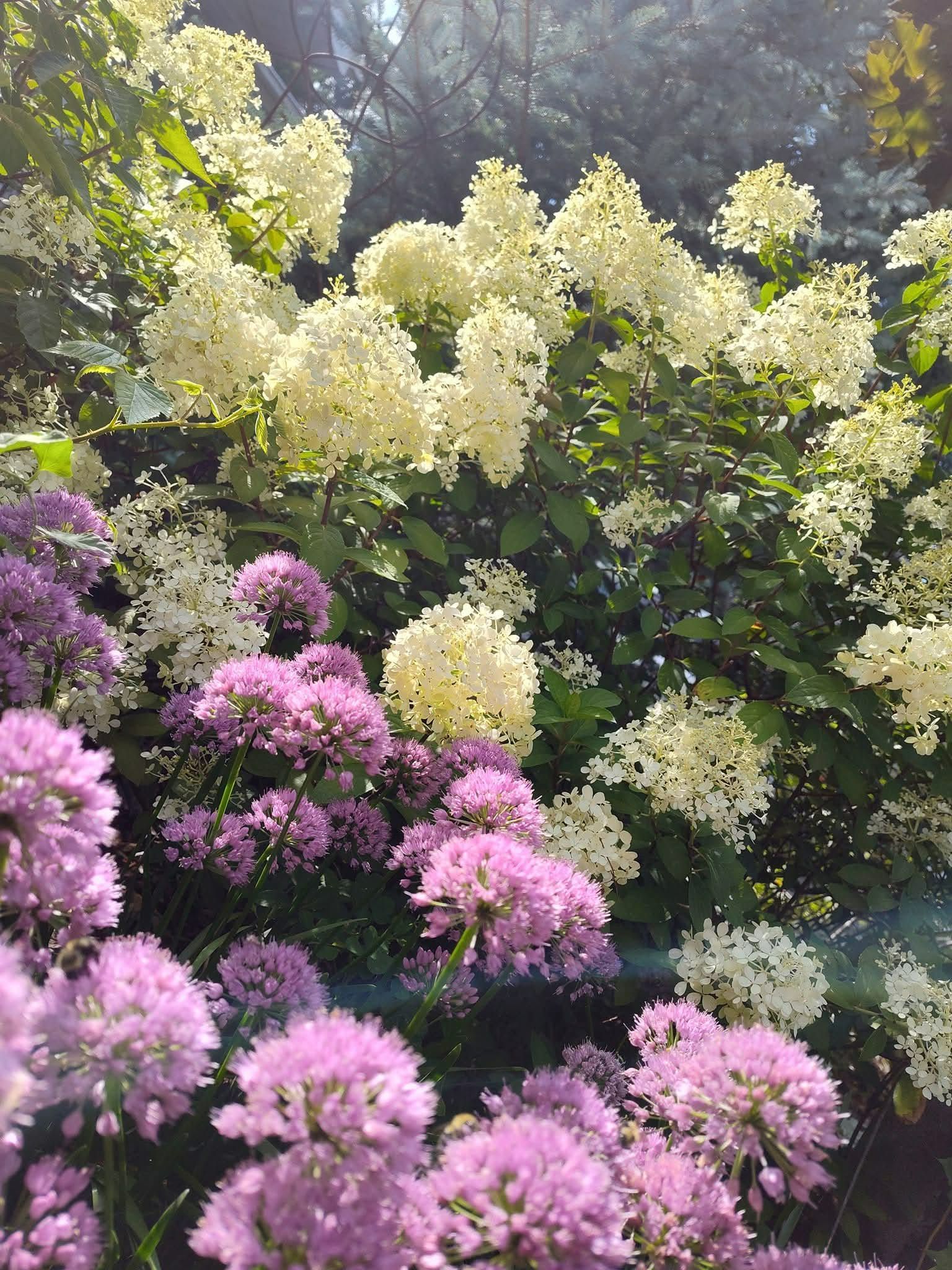 "Two of my favorites from Bauman's Nursery: Bobo Hydrangea and Serendipity Allium. These two bring weeks of beautiful color to the garden."