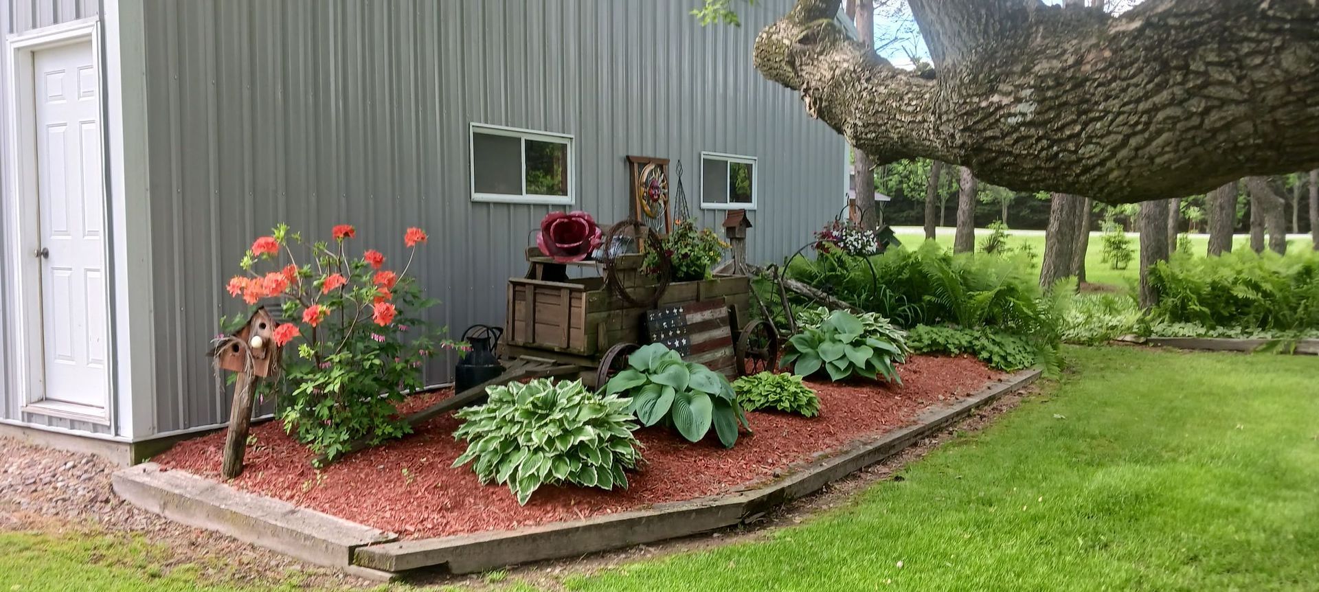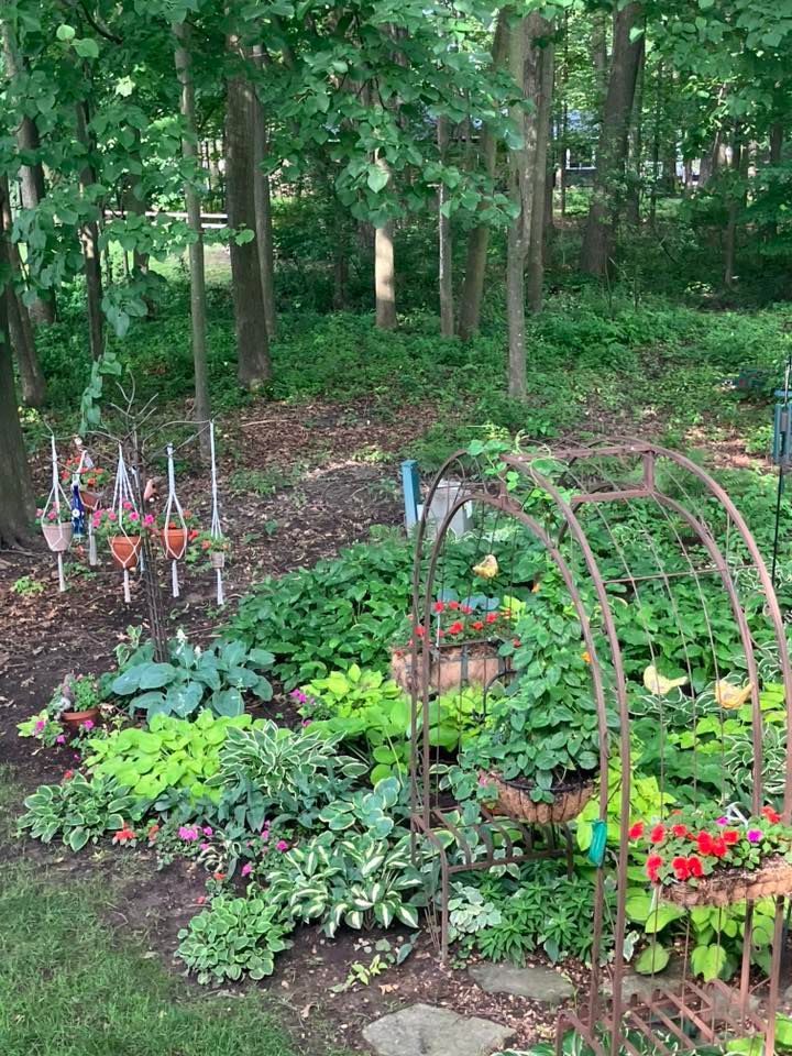 "Azalea, a few hostas, metal art from Baumans, the rest from friends!"